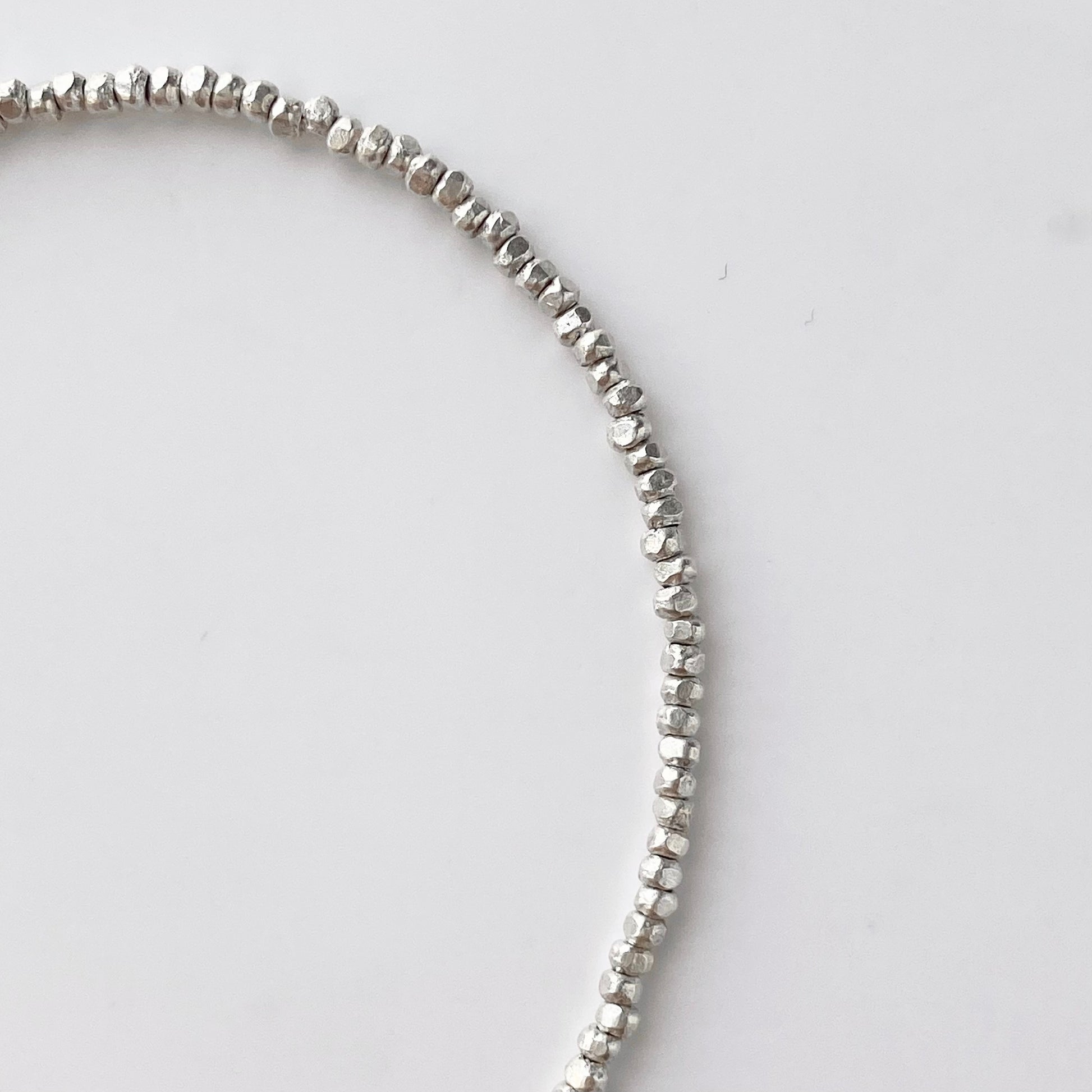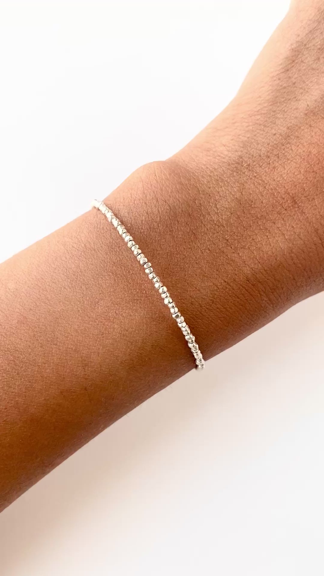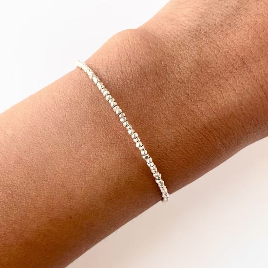 Refined and dainty beaded silver bracelet— soft, graceful elegance.