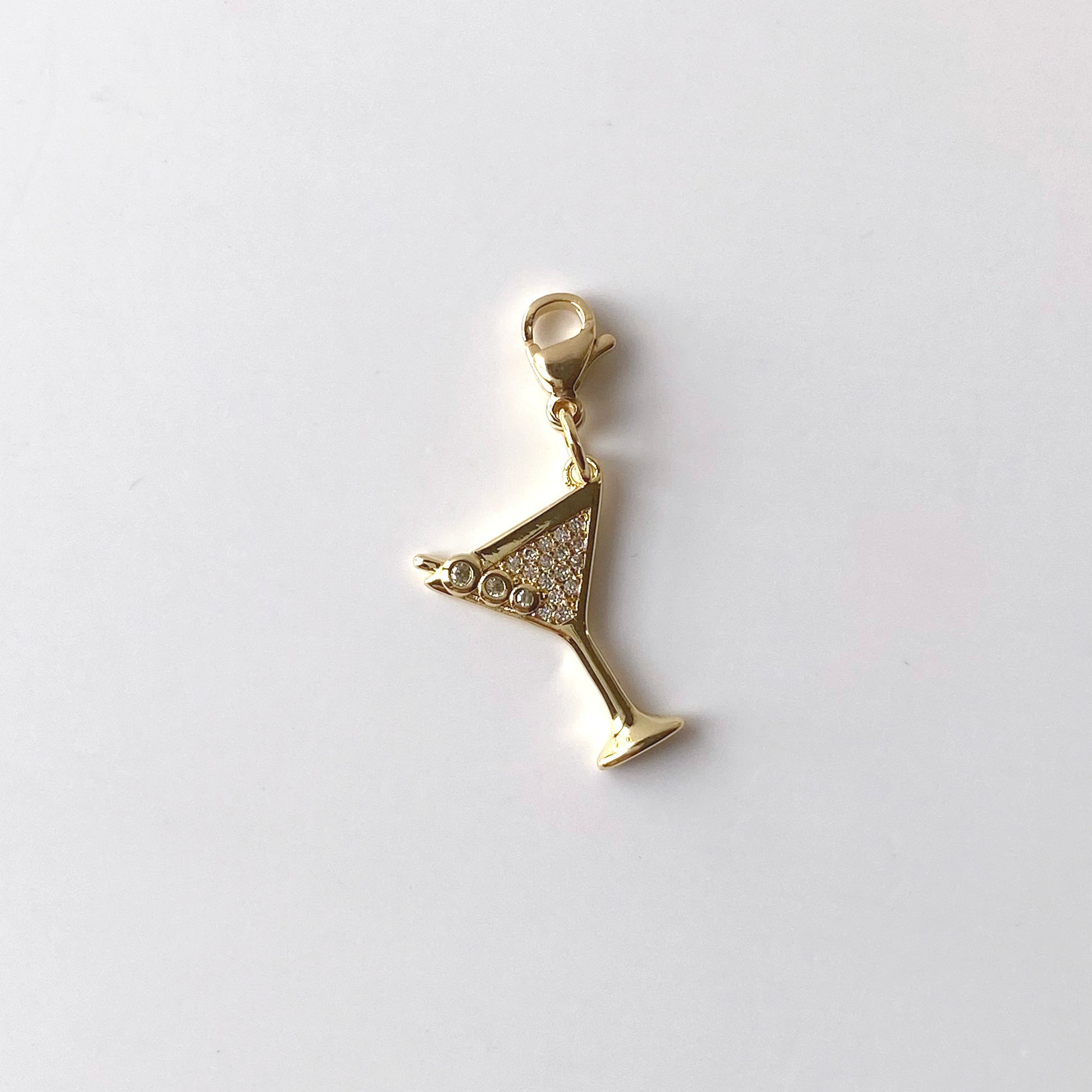 Bring the party with you wherever you go with this playful cocktail glass charm. Fun, chic and full of personality.