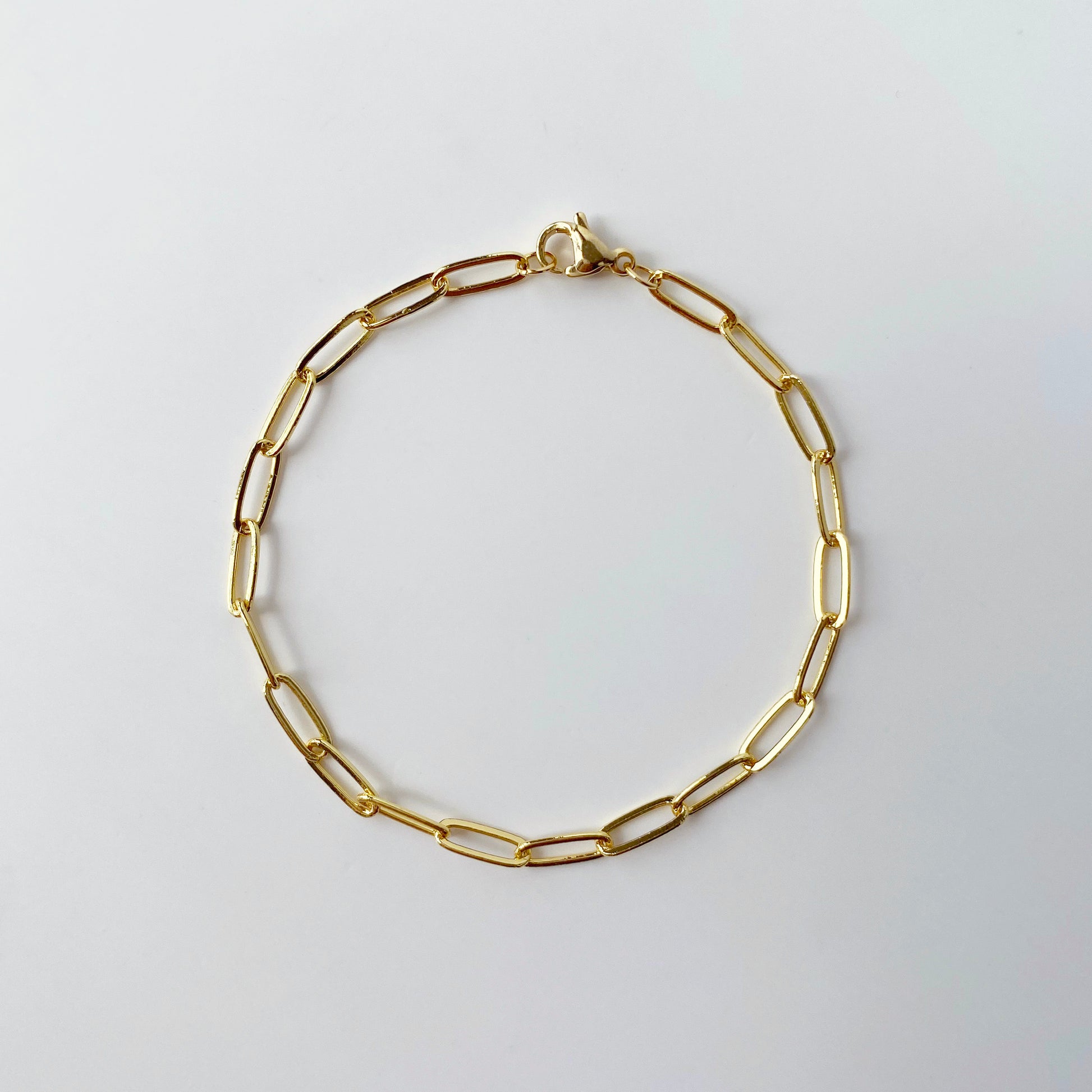 Sleek, versatile, and effortlessly stylish. This medium-sized paperclip chain bracelet is crafted from stainless steel and plated in 18k gold, perfect for wearing solo or pairing with charms and other bracelet for a stacked look.